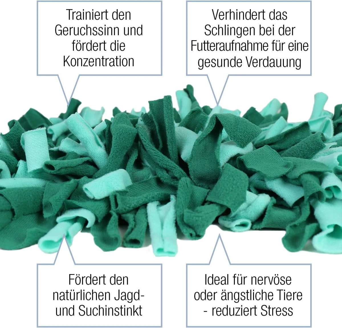 - Langdurig plezier: dit snuffeltapijt bootst het zoeken naar voedsel op gras en velden na. Verberg de lekkernijen of het kleine hondenspeelgoed in het snuffeltapijt. Kalmeert uitgedraaide honden, langdurig plezier van het snuffelen.