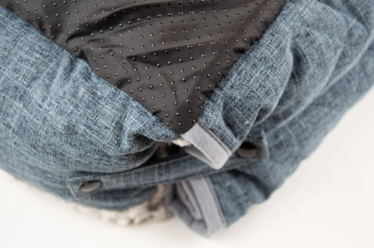 De I-CIGO handenmand wordt gemaakt van100% polyester . Het slaapgedeelte is bekleed met een luxe korte pluche vacht voor warmte en comfort. Afgewerkt met een faux suรจde piping en knopen in het midden en voorzien van een geborduurd I-CIGO logo.