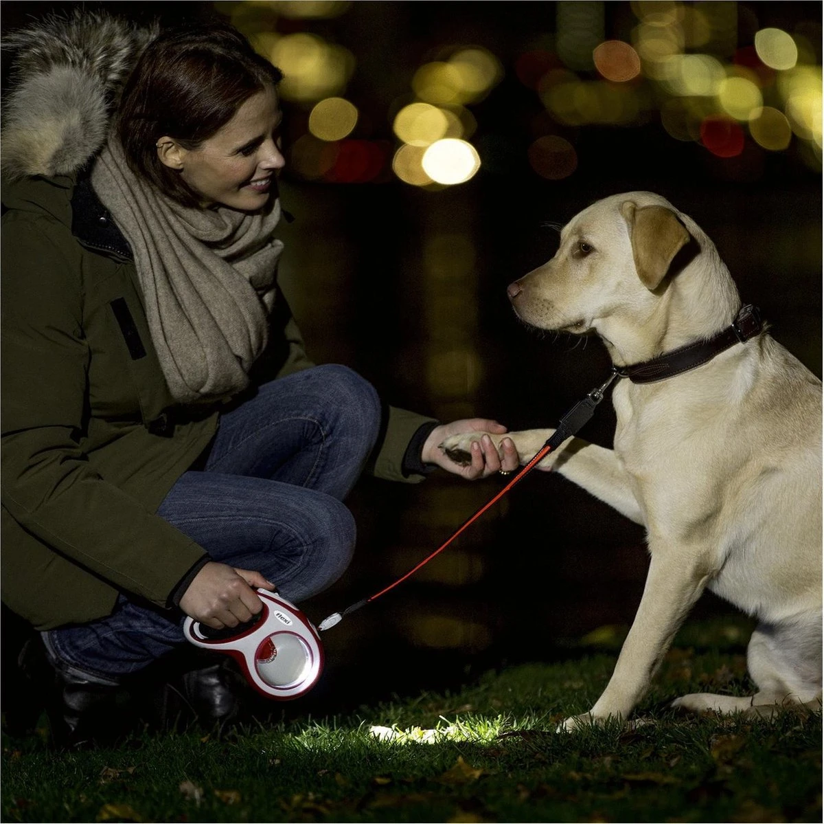 Flexi Lamp Universeel Zwart Een makkelijk te bevestigen led lampje op de maten S, M en L.Aan de voorzijde dient het lampje om bij te schijnen zodat je hond goed te zien is. Aan de achterzijde zit ook een led lampje zodat je zelf ook goed te zien bent.Makkelijk te bevestigen met een klittenband systeem.Als je het lampje niet gebruikt kan je de klittenband afdekken met de dop. Materiaal: kunststof/led verlichtingKleur: zwart