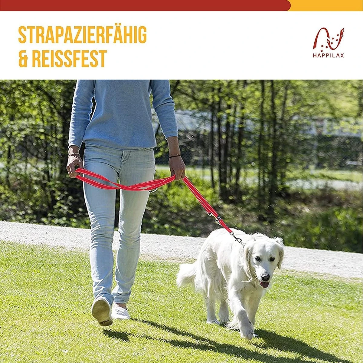 Happilax Dog Leash 2m Adjustable – Red / Reflective – 3-Step Adjustable Leash – Double Leash, Tug Leash – Geschikt Als Hondenriem Voor Grote Honden Of Als Sleepriem Voor Kleine Honden.