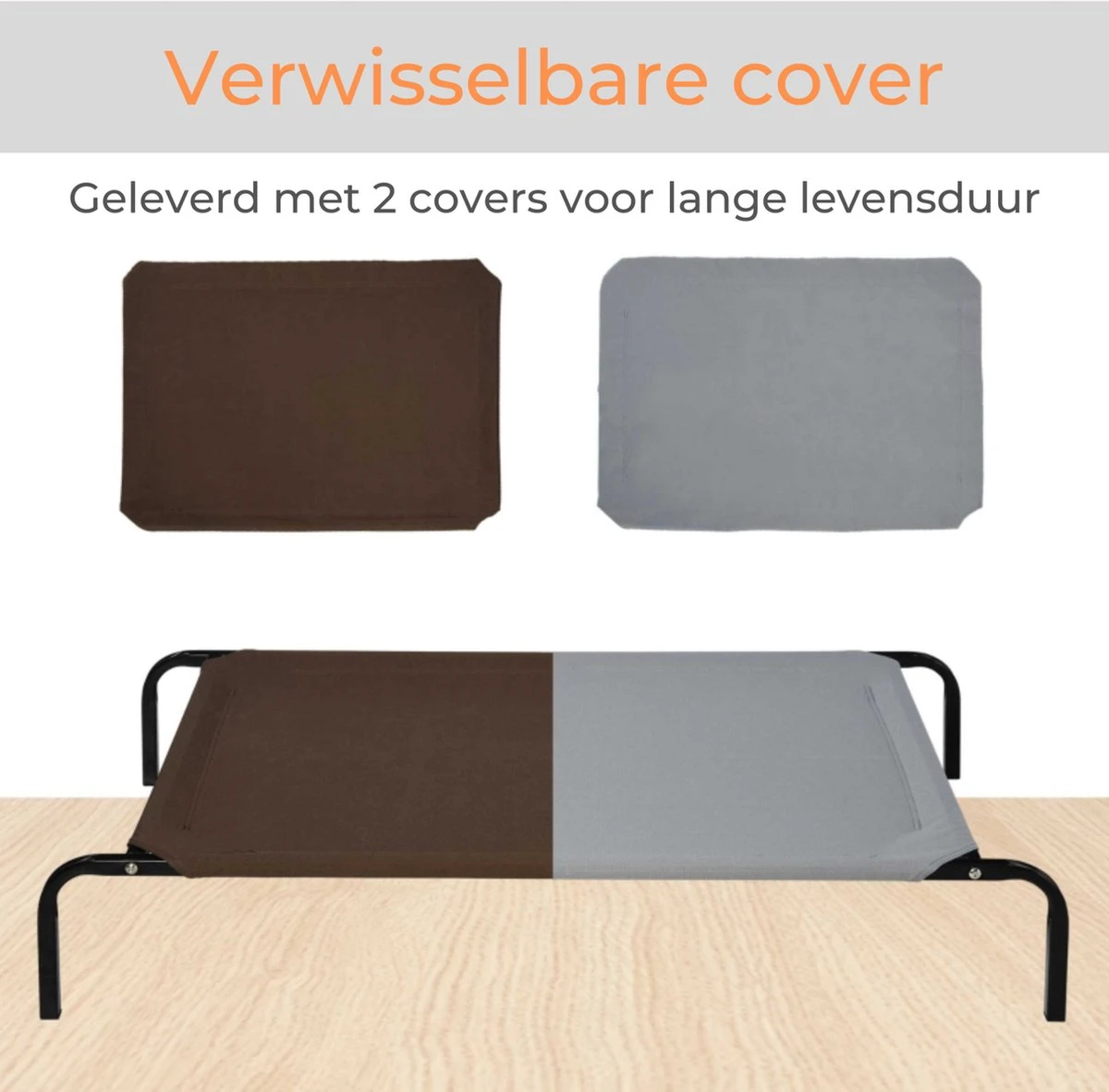- Kleur: Zwart frame, grijze en koffiekleurige cover,