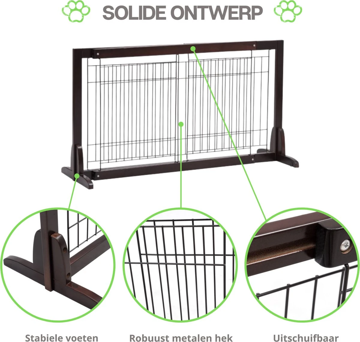 Ons hondenhek wordt gekenmerkt door de hoogwaardige materialen en afwerking. Het traphekje kan gebruikt worden voor huisdieren zoals honden en katten bij een trapopening of een doorgang. Doordat het traphek in breedte verstelbaar is van 97 tot 161 cm is het flexibel en voor veel toepassingen te gebruiken.