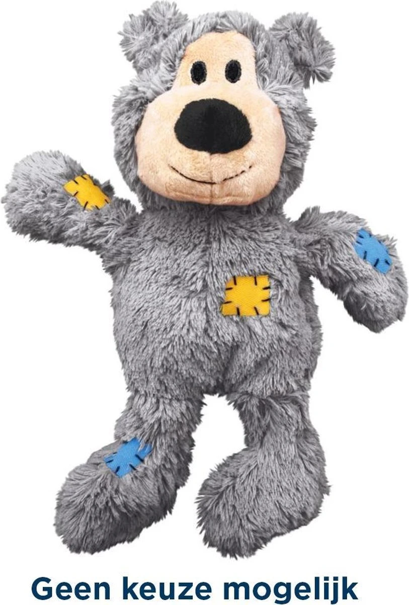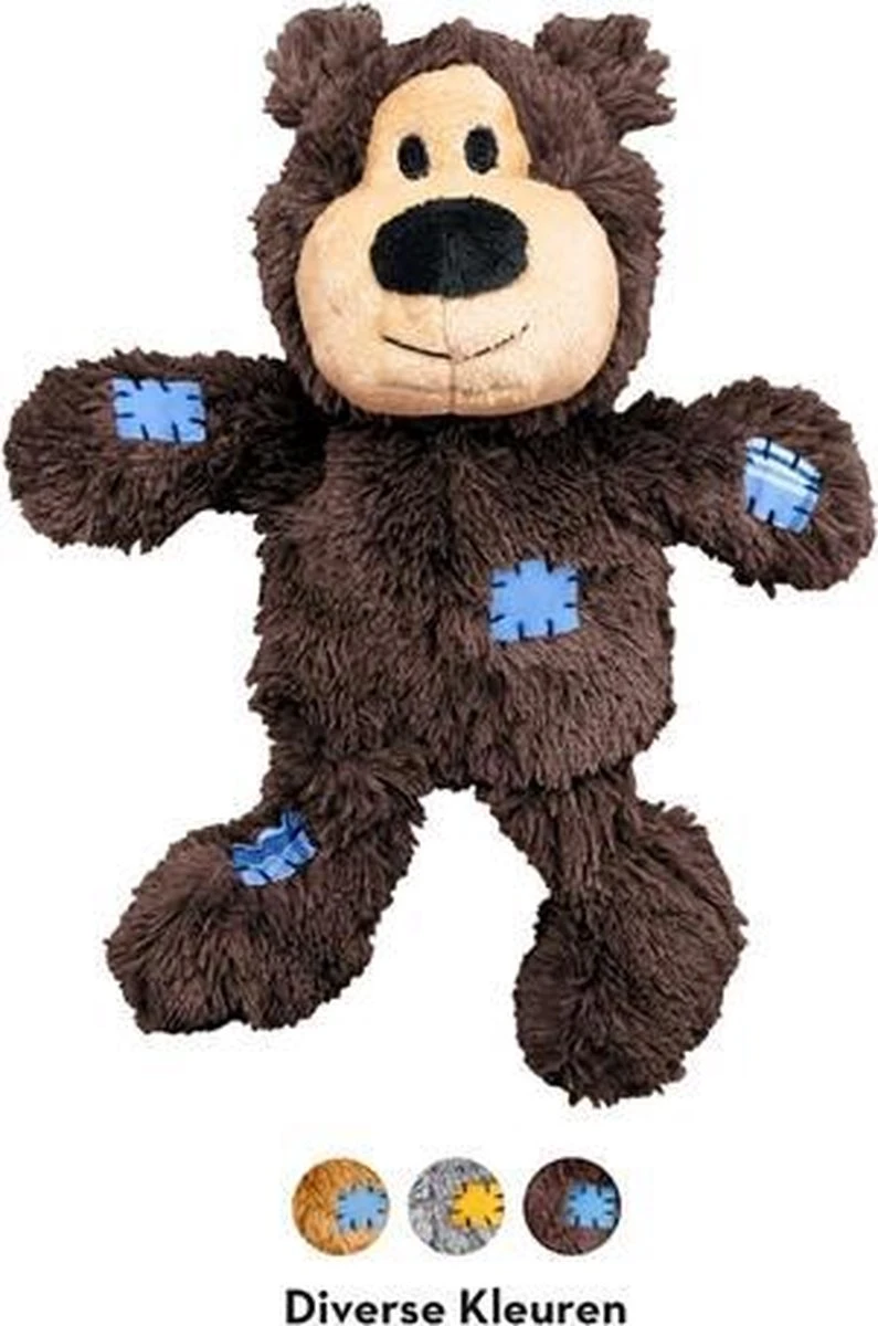 Kong Wild Knots BearsKong Wild Knots zijn zacht en knuffelachtig aan de buitenkant, en duurzaam en sterk aan de binnenkant. Wild Knots beren zijn een gegarandeerd succes onder honden en hun eigenaars. Honden zijn dol op het gevlochten skelet en het verstevigde pluchen lichaam zorgt voor extra duurzaamheid. Kong Wild Knots hebben minder vulling, dus minder rommel, en ze piepen om het spel aan te moedigen.