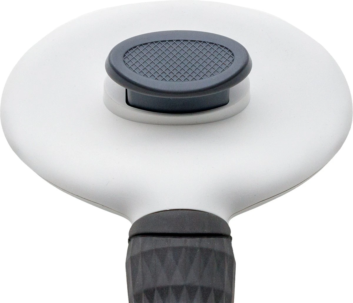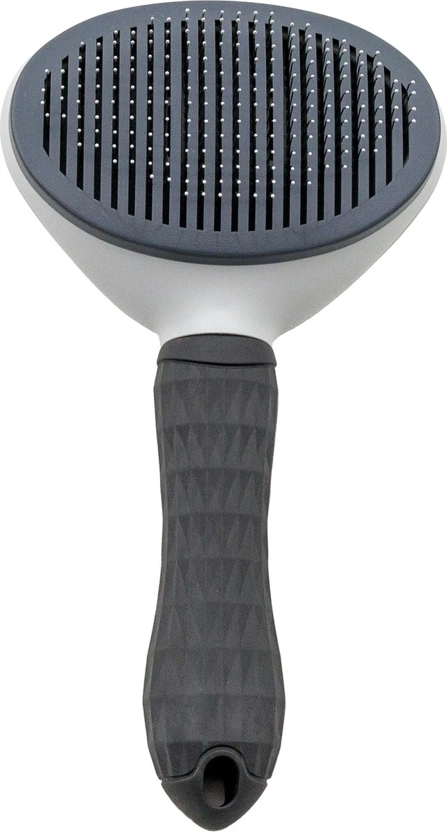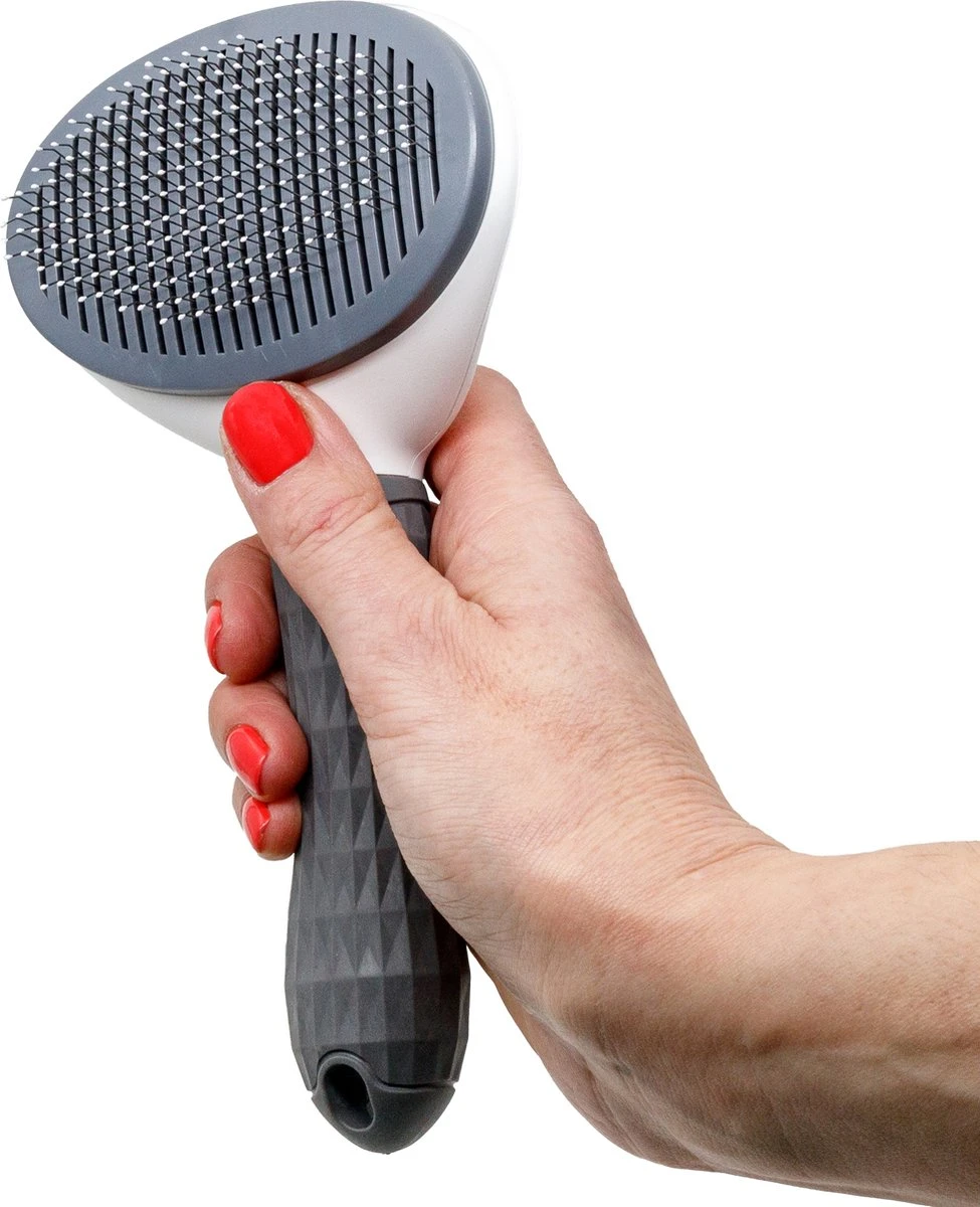 - Intrekbare borstelharen: de zelfreinigende slickerborstel is enorm gemakkelijk te gebruiken en schoon te maken; nadat u op de knop hebt gedrukt en de borstelharen hebt losgemaakt, kunt u beginnen met het borstelen van uw huisdier; na het borstelen drukt u nogmaals op de knop om de borstelharen in te trekken; de vacht kunt u gemakkelijk wegvegen, zodat u geen plukken vacht meer uit uw huisdierborstel hoeft te peuteren.