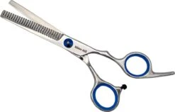 De effileerschaar is een professionele, 6 inch/15,24 cm. De schaar is gemaakt van hoogwaardig roestvrij staal. Deze uitdunschaar is speciaal ontworpen voor het verzorgen van huisdieren en is een belangrijk hulpmiddel voor elke dierenverzorger of huisdiereigenaar. De schaar weegt slechts 58g en is verkrijgbaar met een prachtige blauwe kleur als afwerking en grip in de ogen van de schaar.