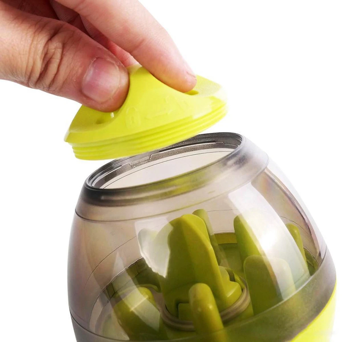 De hond of kat kan het (droog)voer ruiken en zien, maar de bal moet bewegen om het voedsel er uit te krijgen, dus het is altijd leuk! Door de transparante kast kunnen dieren gemakkelijk het eten zien. Drie gaten in het bovenste gedeelte zorgen ervoor dat de scherpe neus het voedsel gemakkelijk kan ruiken.