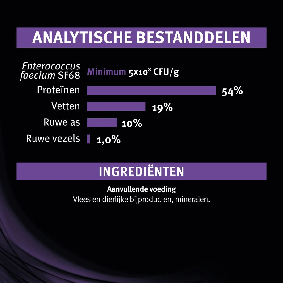 Een unieke probioticum van PURINA® voor honden van alle leeftijden, die aantoonbaar de intestinale gezondheid, de microflorabalans en een sterk immuunsysteem helpen te bevorderen.