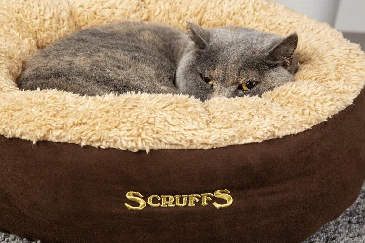 Deze voordelige kattenmand van de Scruffs Cosy Collectie is uitgevoerd in een imitatie suède buitenvoering met een superzachte binnenvoering van 100 recycled polyester.