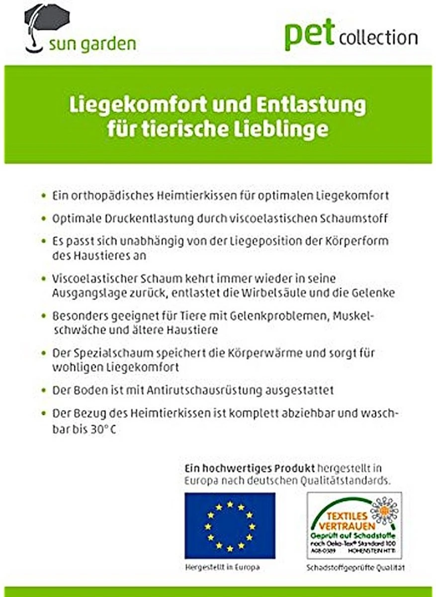 Het Duitse bedrijf Sun Garden, bekend van o.a. kwaliteitsmatrassen en boxsprings heeft nu ook luxe kleden en (orthopedische) kussens voor huisdieren ontwikkeld. Uw hond kan heerlijk ontspannen liggen op het orthopedisch hondenkussen Buddy. Het kussen geeft een optimale drukontlasting voor de wervelkolom en de gewrichten. โข Orthopedisch hondenkussen voor optimaal ligcomfort
